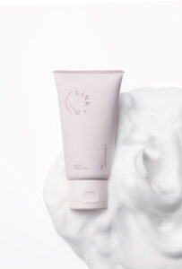 植物由来のセルロースなどを組み合わせたモイストストレッチポリマーを配合。糸を引くとろみペーストを泡立てると、素早く高密度できめ細かい濃密泡が生まれ、肌に吸い付くように密着して汚れを吸着します。濃密泡でありながら泡切れが良く、水ですっと流れ、汚れをすっきり落としながらうるおいを残します。多忙な方も愉しみながら毎日続けられるように、あえて泡立て不要のポンプ式等ではなく、「濃密泡を簡単につくれる」洗顔料を開発しました。